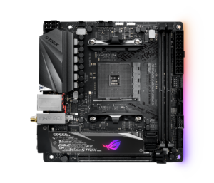 Il modello ROG Strix B450-I Gaming rappresenta la soluzione ideale per la creazione di sistemi compatti ma dalle grandi performance, anche grazie alle moderne CPU Ryzen con grafica integrata. La configurazione con doppio modulo DIMM si combina con gli esclusivi profili ASUS DRAM OC per incrementare la velocità delle memorie fino a DDR4-3600 ed oltre. Per questo fattore di forma la connettività è fondamentale, ed è questo il motivo per cui la scheda offre Wi-Fi dual-band 802.11ac per una connettività wireless immediata. La nuova ROG Strix B450-I Gaming dispone della tecnologia M.2 Audio Combo, una feature innovativa che garantisce una migliore e più intelligente gestione degli spazi permettendo di inserire una scheda audio di alta qualità e lo slot per i moderni dischi M.2 nello stesso alloggiamento, con un generoso dissipatore dedicato con elementi LED RGB.