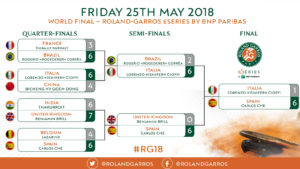 Gli otto vincitori delle fasi di qualificazione, che si sono svolte in Brasile, Francia, India, Cina, Gran Bretagna, Spagna, Italia e Belgio da marzo a maggio, si sono sfidati oggi nello stadio Stadio Roland-Garros, sede in questi giorni dell’Open di Francia. Il campionato mondiale, il primo del titolo di gioco Tennis World Tour è stato tramesso in diretta su Facebook live di France Télévisions e del Roland – Garros.